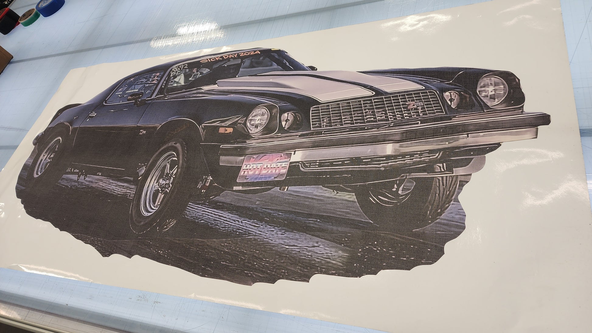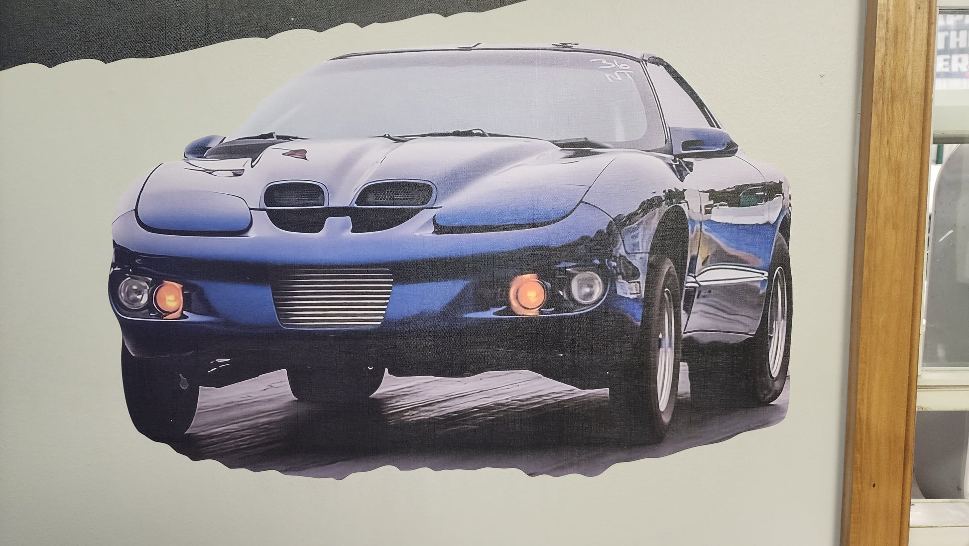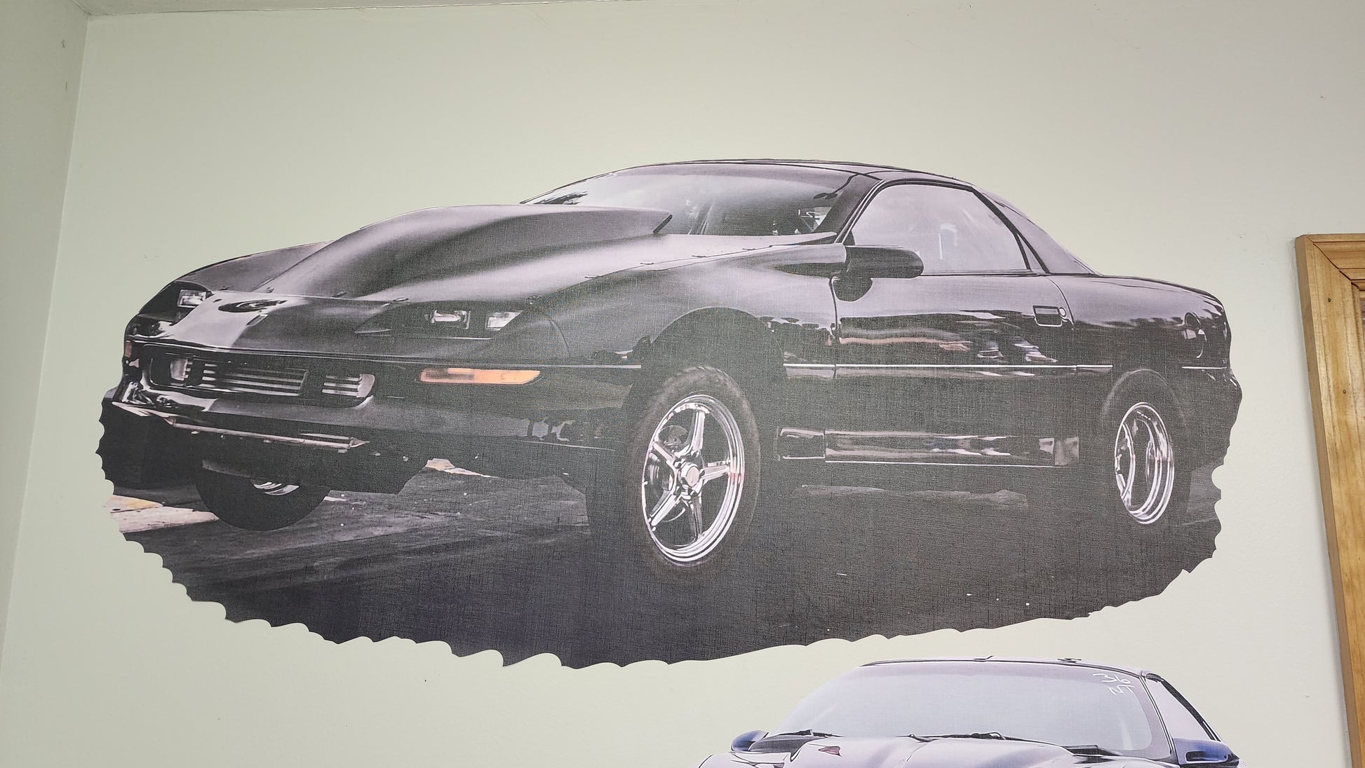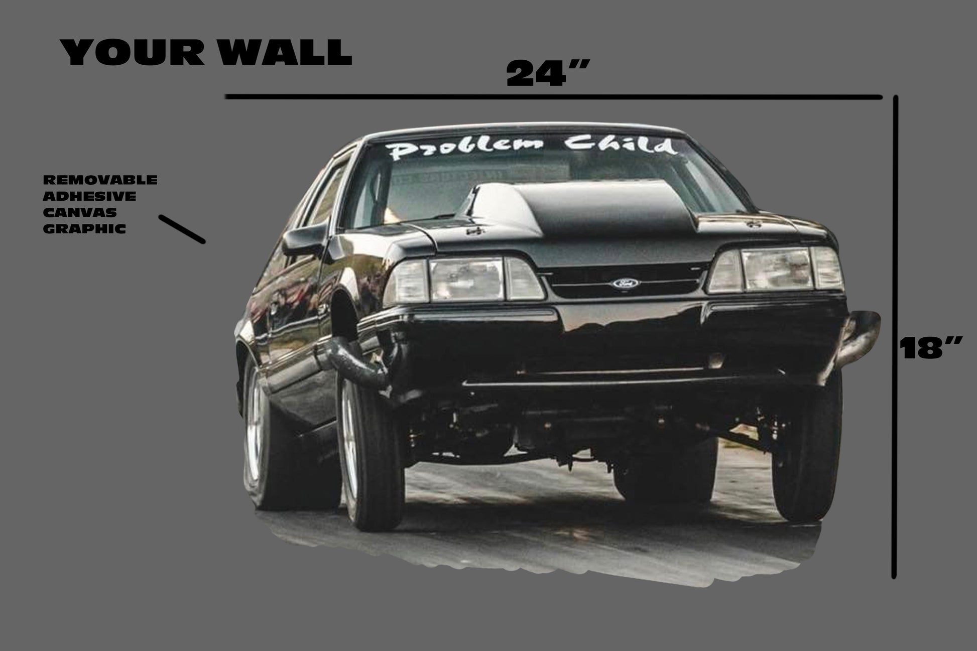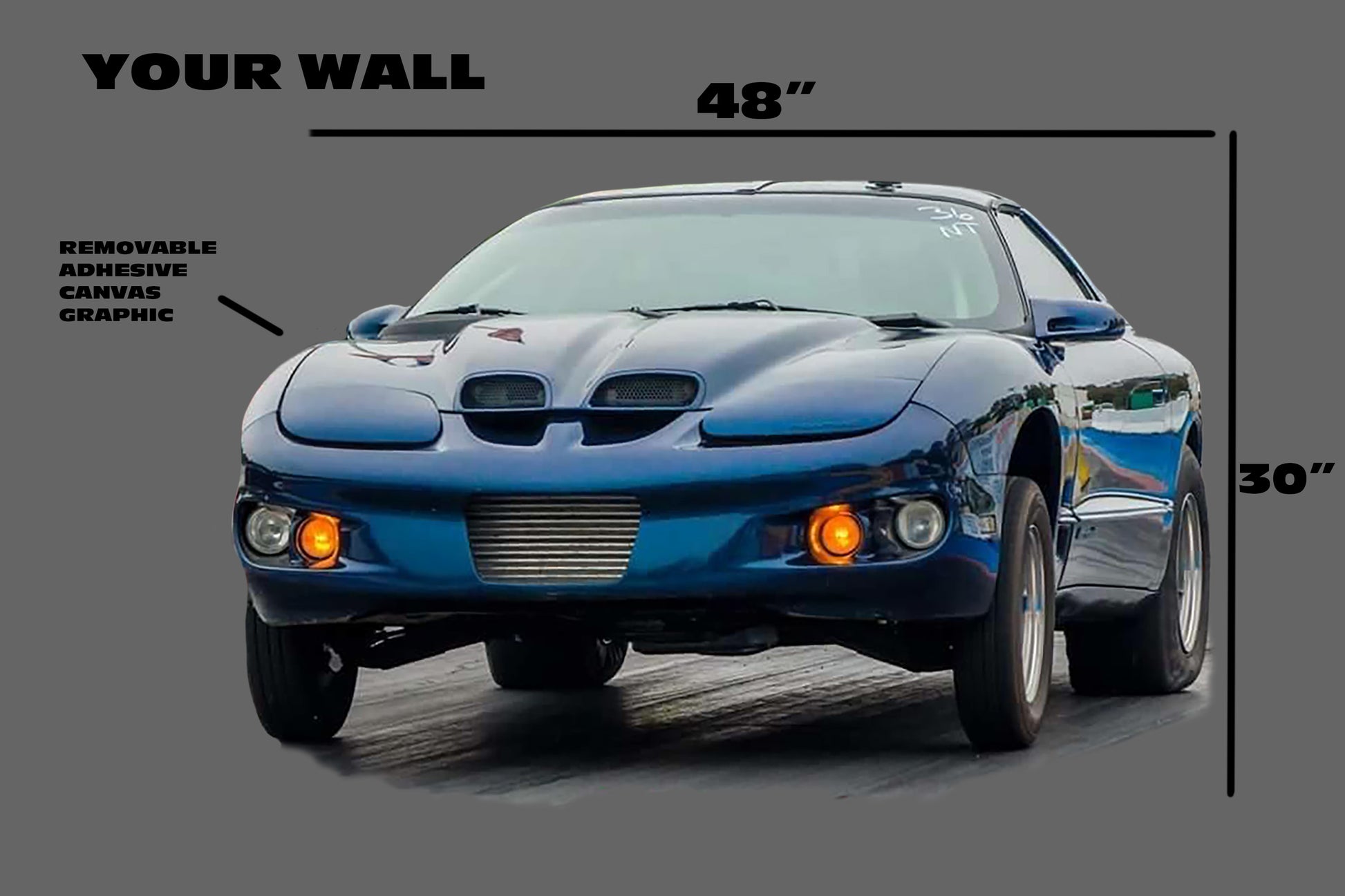 This is a custom printed large car canvas wall graphic with removable and repositional adhesive. You can stick them just about anywhere and move them over and over again.