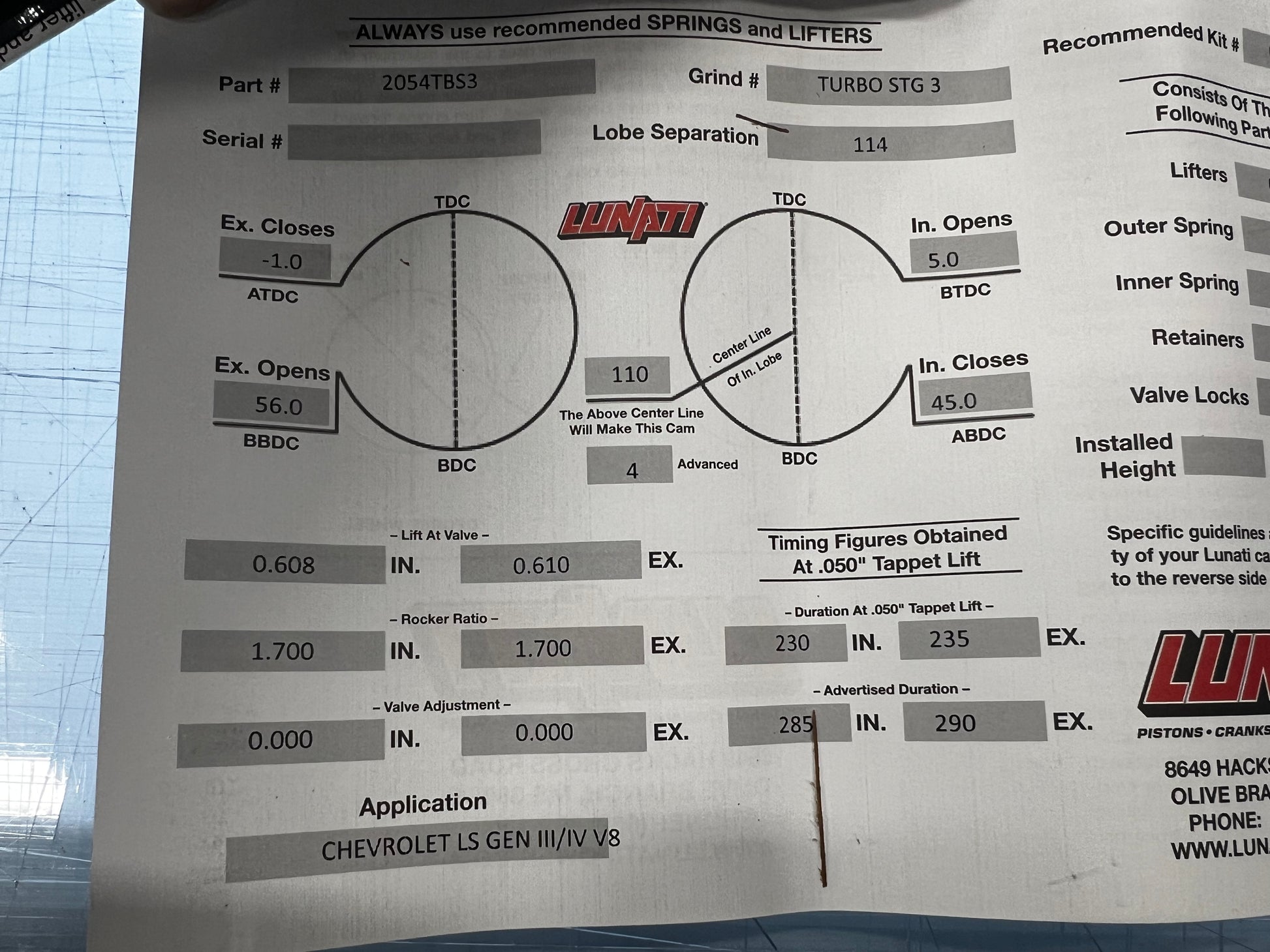 Lunati Turbo LS camshaft - brand new in box - specs in photos