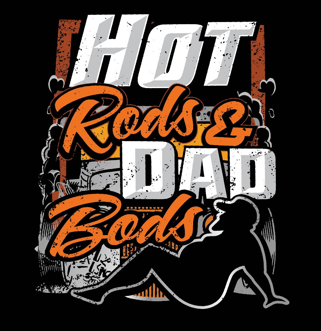 This funny HOT RODS & DAD BODS design is perfect for any car dad who may be a little thick in the middle. Large back grunge print with an old car, dad with his classic dad bod silhouette , large print HOT DAD that catches the eye before the rest of the text. This is our newest offering and is quickly becoming our BEST SELLER!