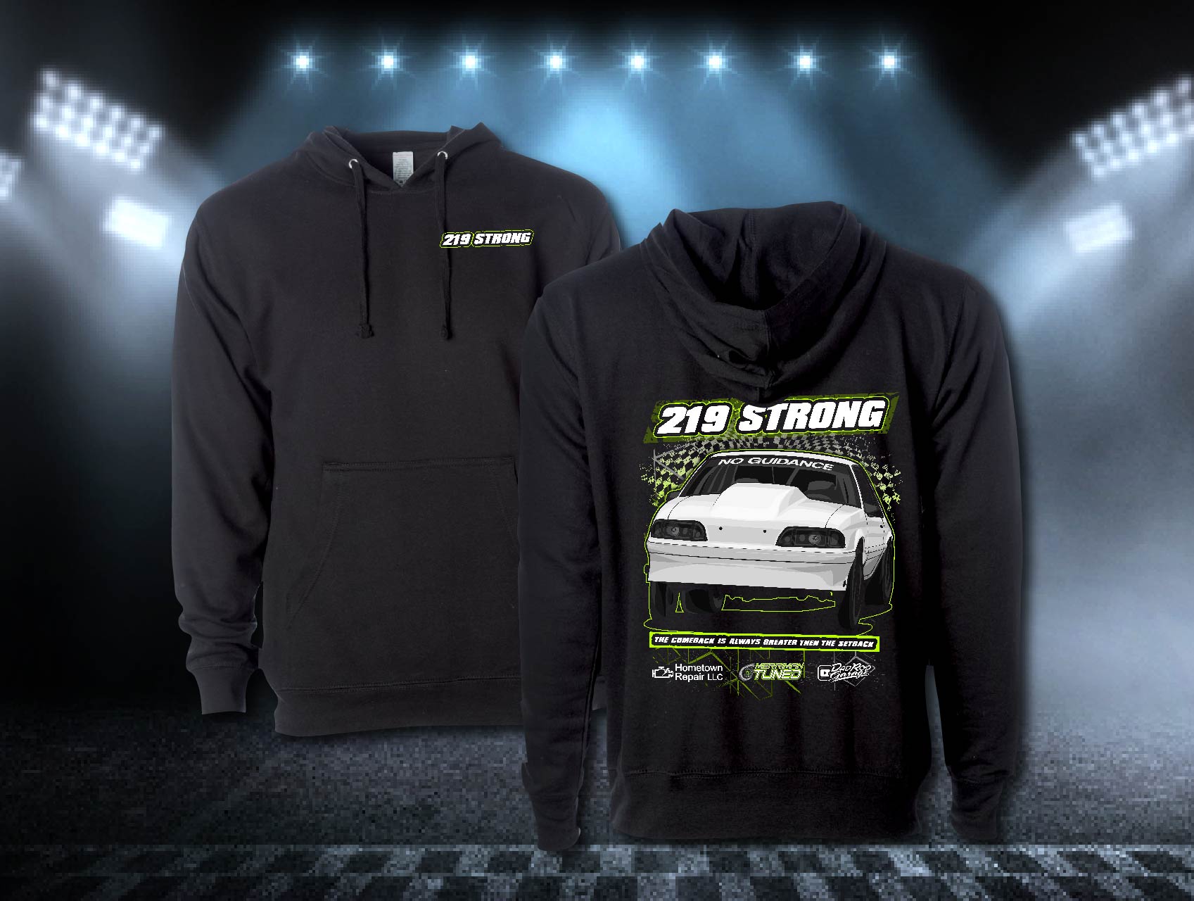 We have never seen anyone who works harder than the 219's very own Mat Gaskin. As many of you know there was a devistating wreck at 2025 War in the Woods and No Guidance was totalled. Thank God the driver was not hurt. This apparel run is our way of helping a great friend and 219 brother rebuild. All profits from the sales of the 219 Strong No Guidance T-shirts and Hoodies will go directly to Mat's team to rebuild.